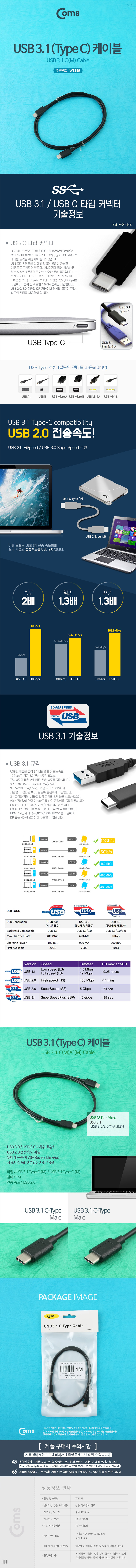 USB 3.1 케이블(10Gbps 지원) type C(M)-C(M) 1M WT359