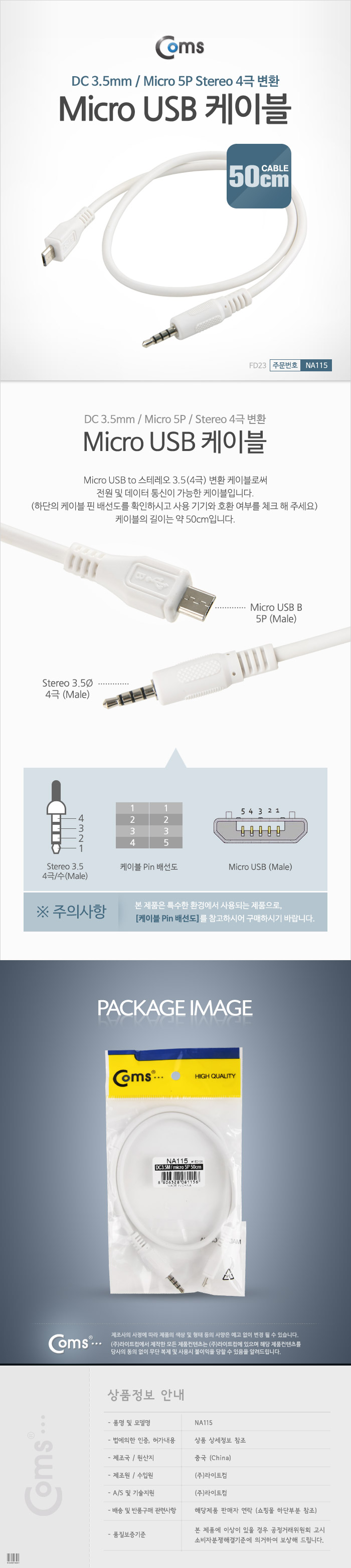 마이크로 5핀 (Micro 5Pin, Type B) USB 케이블