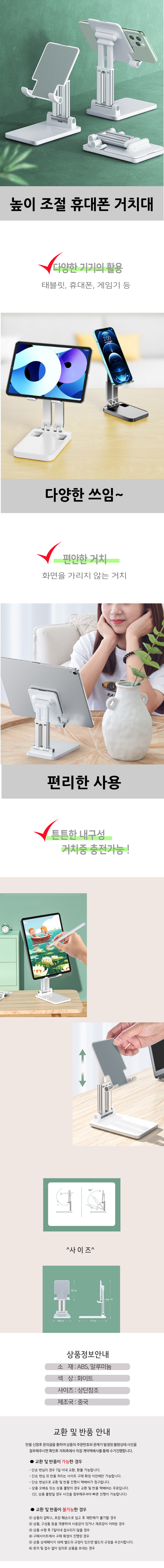 탁상용 핸드폰 거치대 각도 높이 조절 테블릿거치대