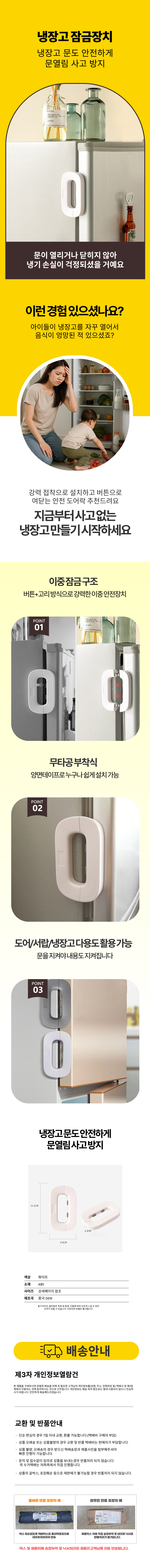 냉장고 이중 잠금 장치 안전 도어락 도어 문열림 방지
