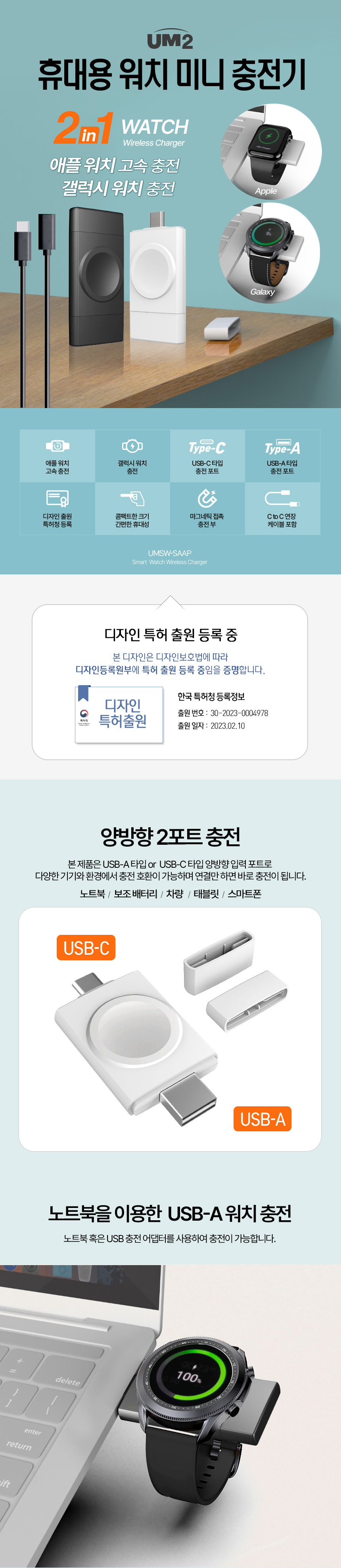휴대용 애플워치 갤럭시워치 미니 충전기 C타입 고속충전기