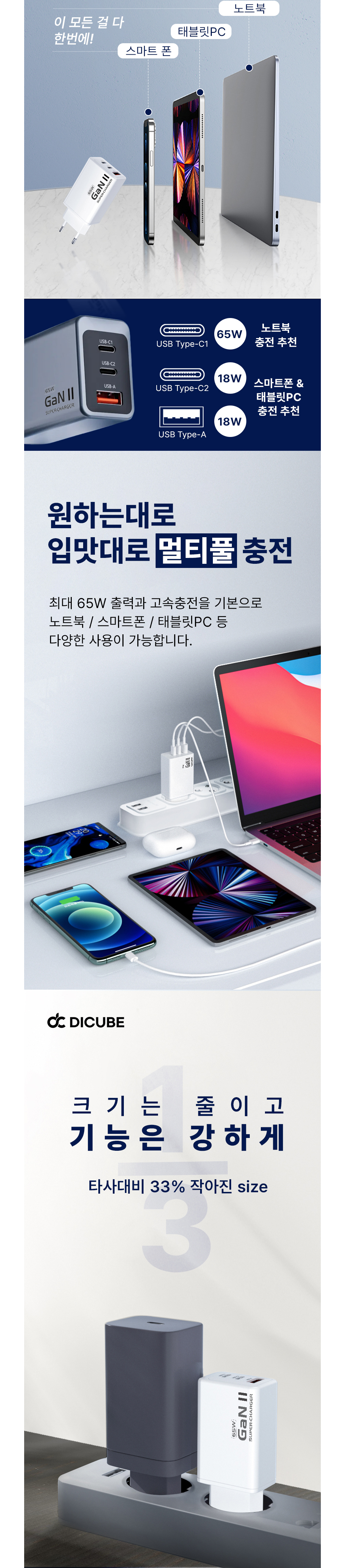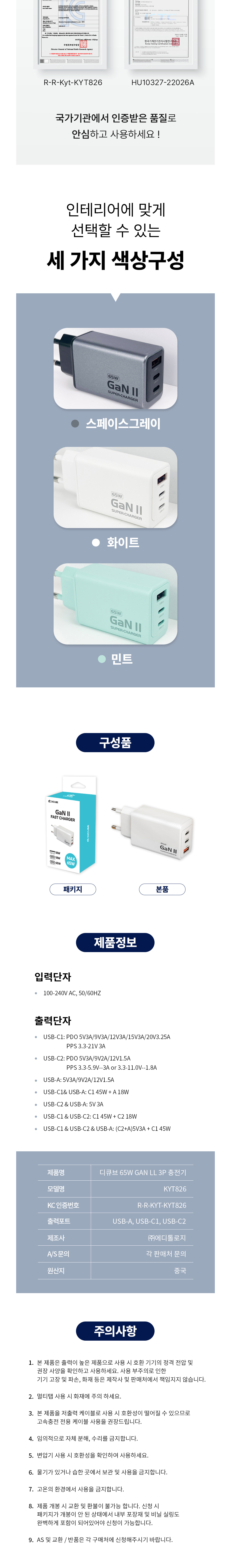 | 품명 및 모델명 | 품명:디큐브 65W GaN Ⅱ 3포트 충전기 / 모델명:디큐브 65W GaN Ⅱ 3포트 충전기 |