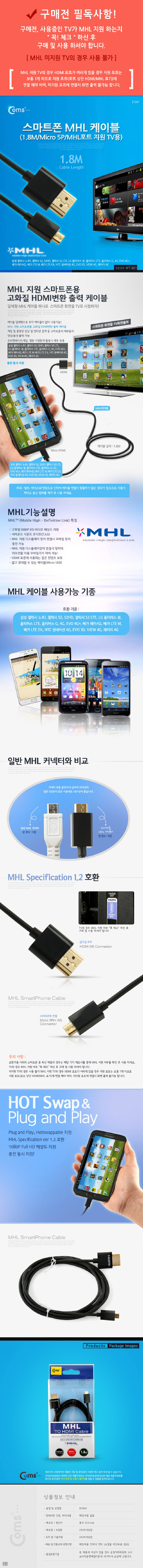 스마트폰 MHL 케이블 1.8M (MHL 지원 TV용) 마이크로5핀 WT481