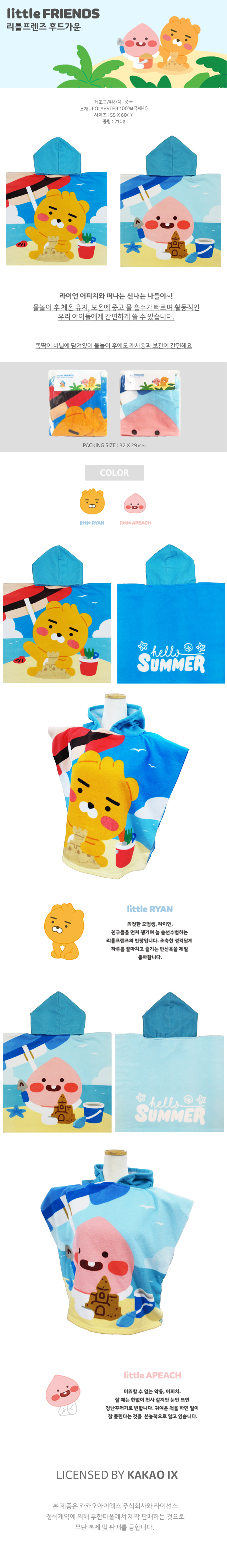카카오타올 후드타월 라이언어피치수건