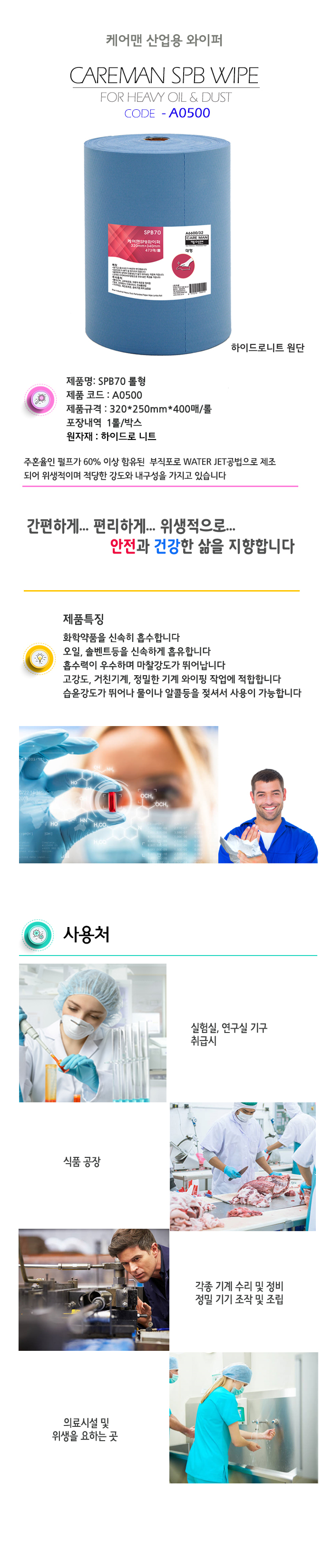 | 품명 및 모델명 | 와이퍼올 블루 페이퍼타올 롤형 400매 |