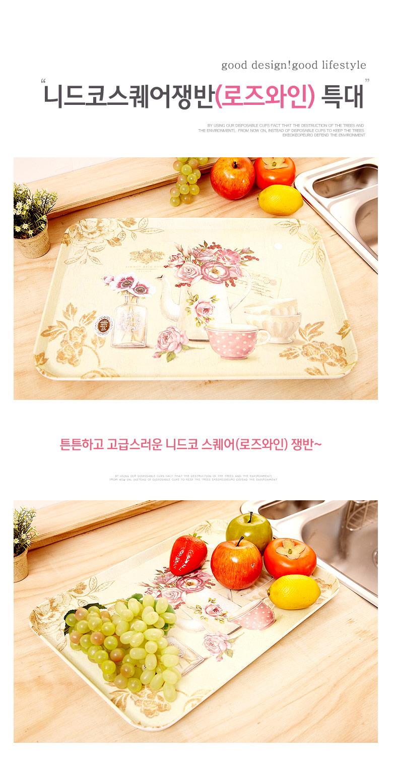 손잡이 사각 쟁반 로즈와인 특대 주방트레이 트레이