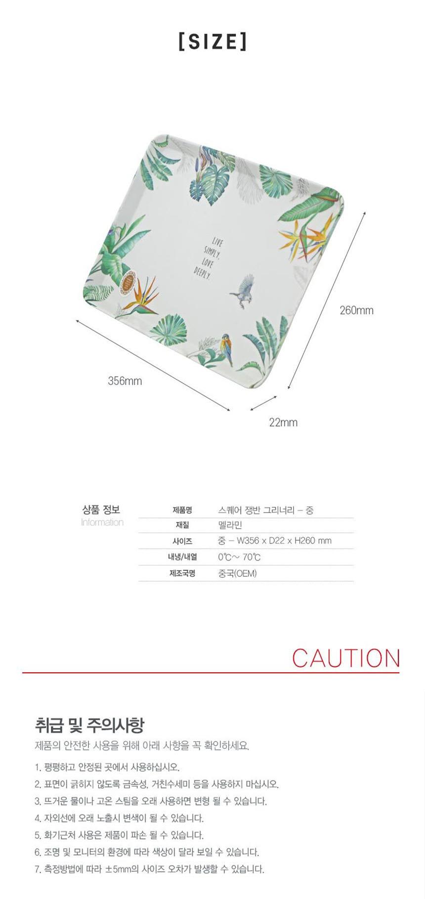 나뭇잎 디자인 사각 쟁반 중 서빙쟁반 서빙트레이