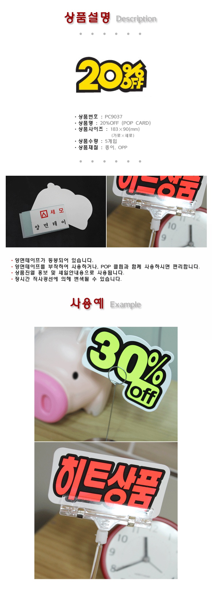 업소용 마트용품 POP카드-20 OFF 피오피 가격표시