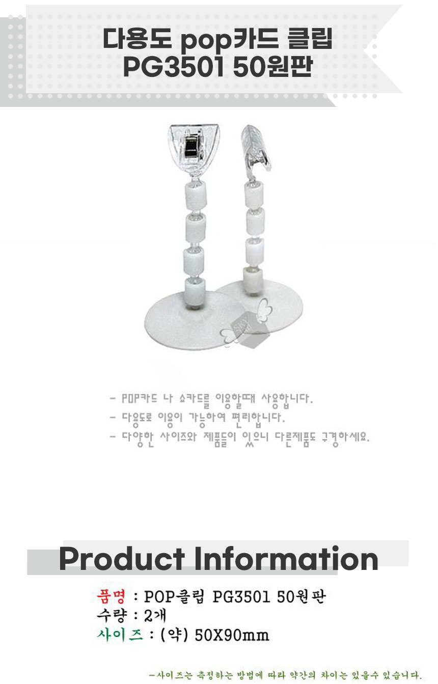 다용도 pop카드 클립-PG3501 50원판 카드꽂이 메뉴판