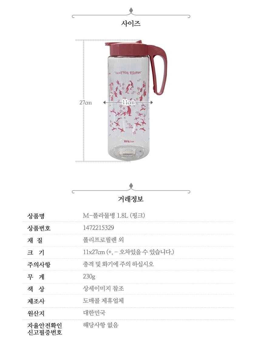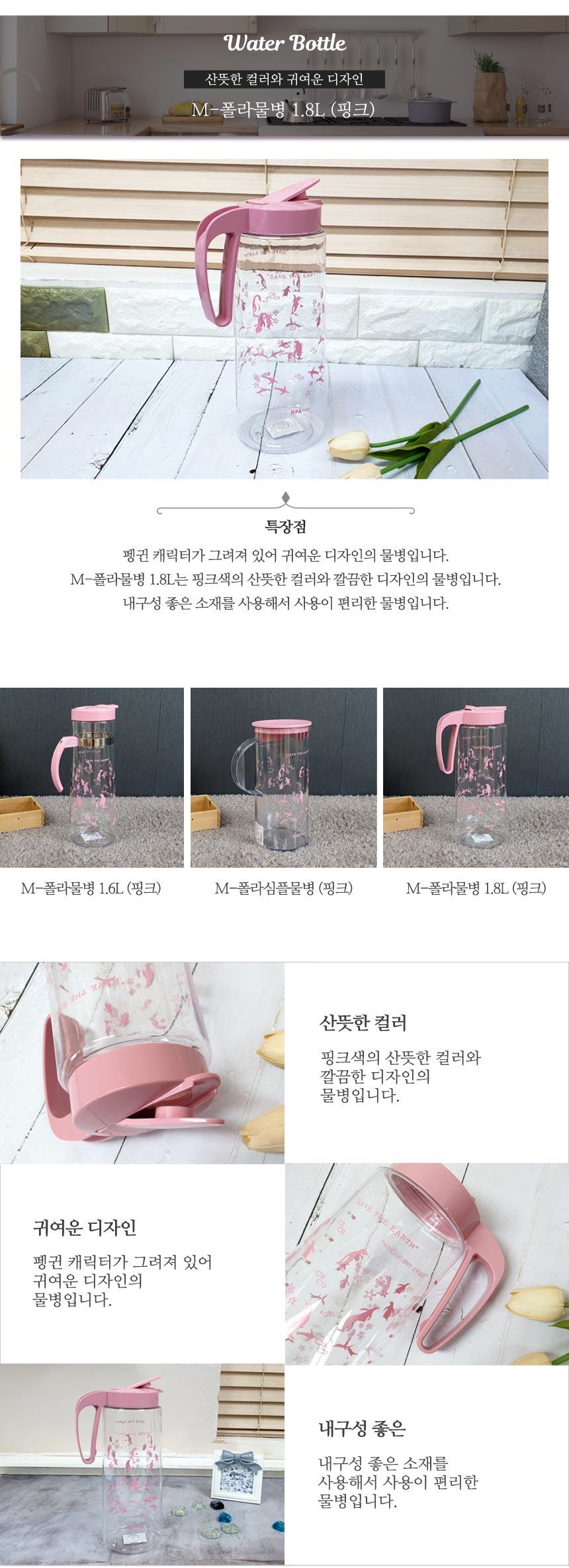 폴라베어 손잡이 물병 1.8L 핑크 x2개 물보관통 물통