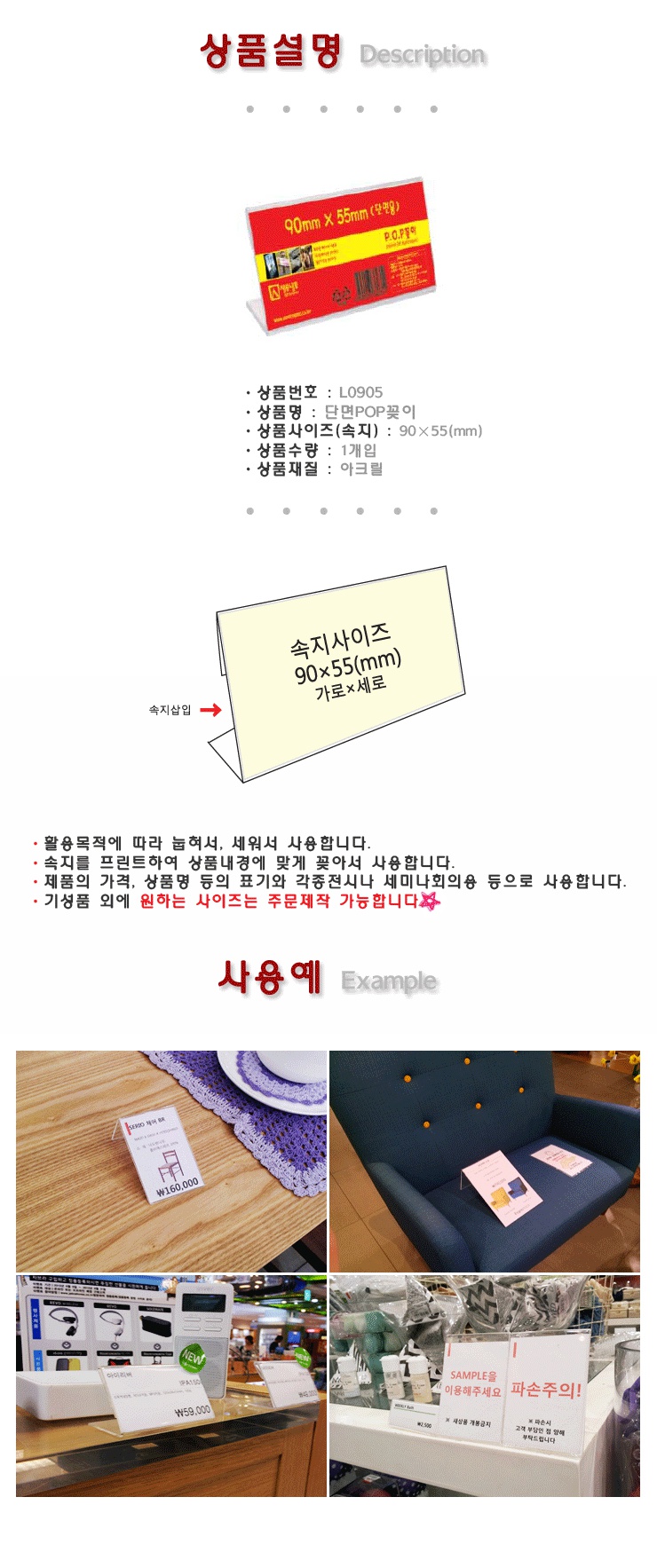 스탠드 단면용 POP꽂이-L0905 x20개 매장전시용