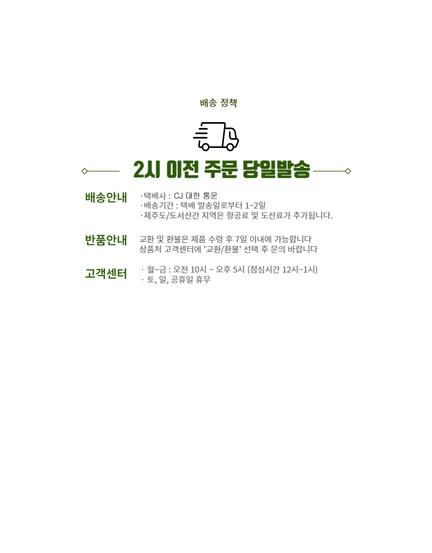 • 배송리드타임14시 이전 주문건 까지 당일 이내 발송