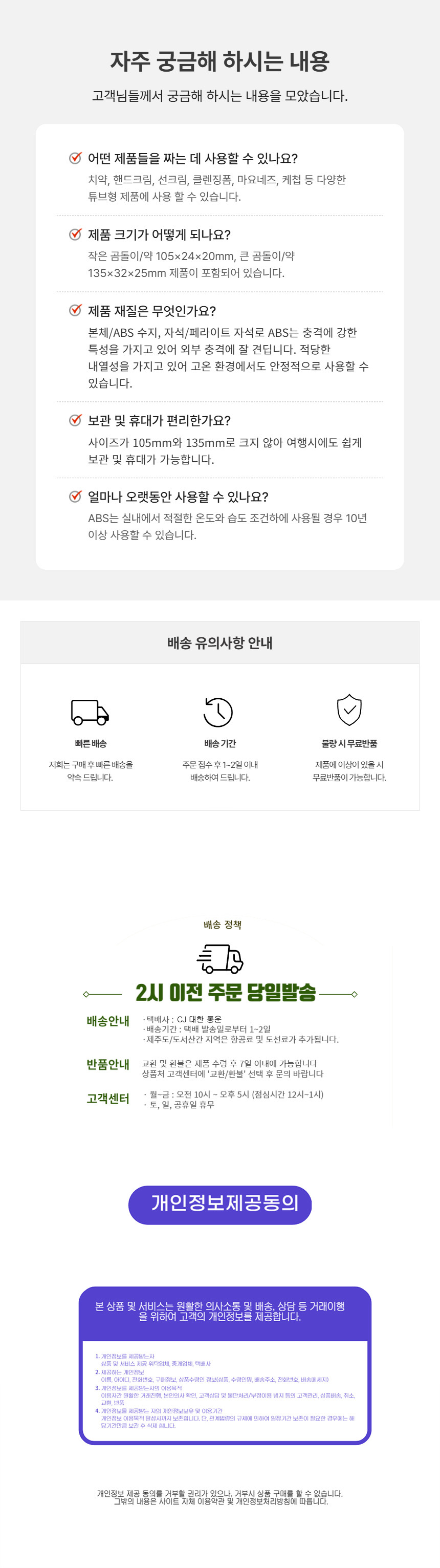 | 제품하자가 아닌 소비자의 단순변심, 착오구매에 따른 청약철회 시 소비자가 부담하는 반품비용 등에 관한 정보 | 배송ㆍ교환ㆍ반품 상세설명페이지 참고 |