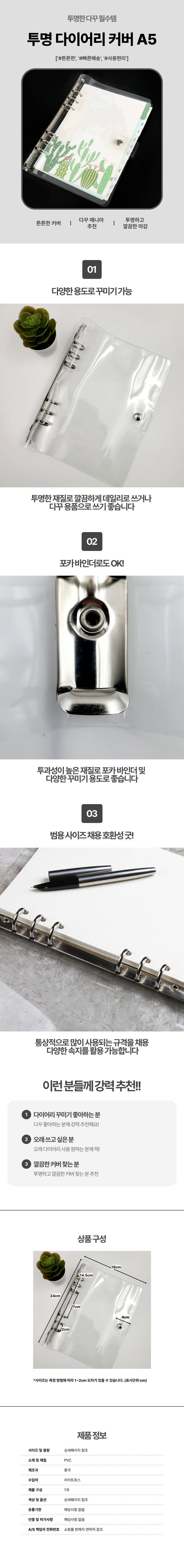| 품명 및 모델명 | A5 투명 다이어리 커버 육공 6공 다꾸 용품 |