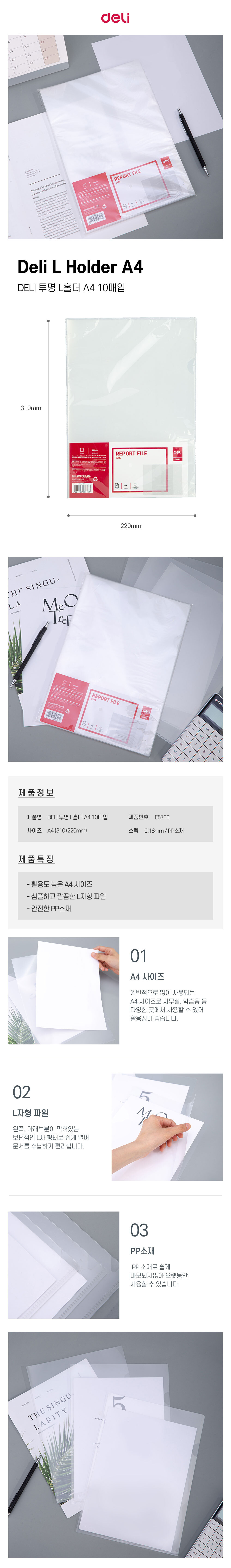 | 품명 및 모델명 | DELI 델리 투명 L홀더 A4 10매입 |