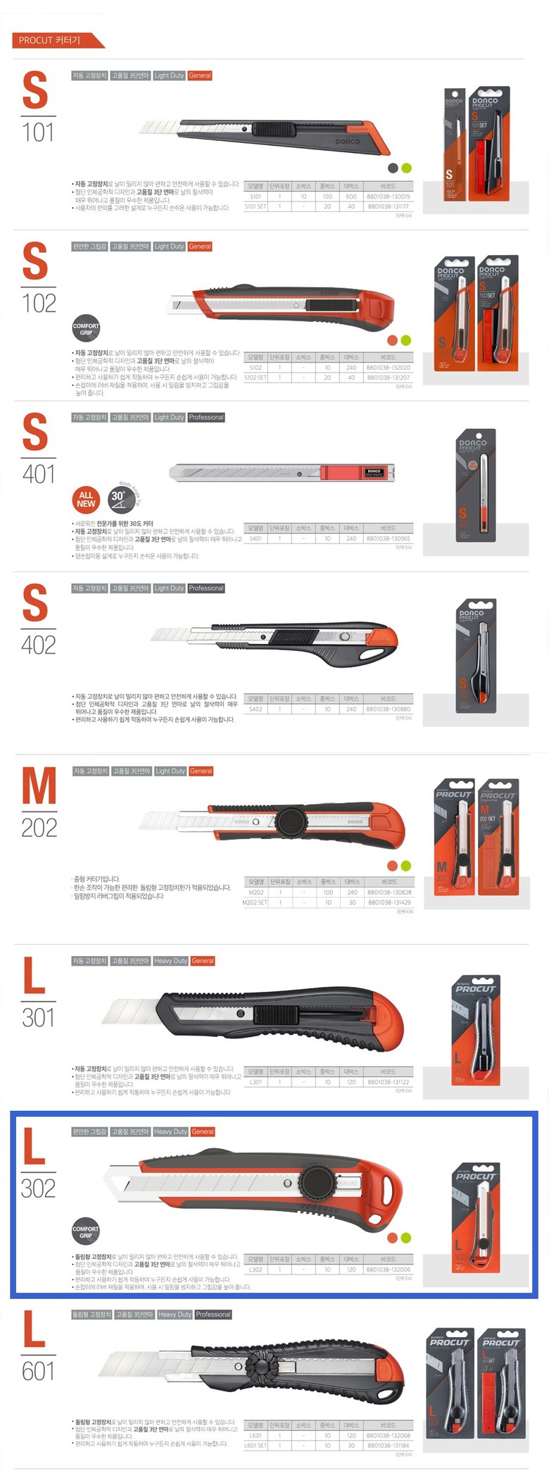 | 품명 및 모델명 | 커터기/도루코 커터기 L302 |