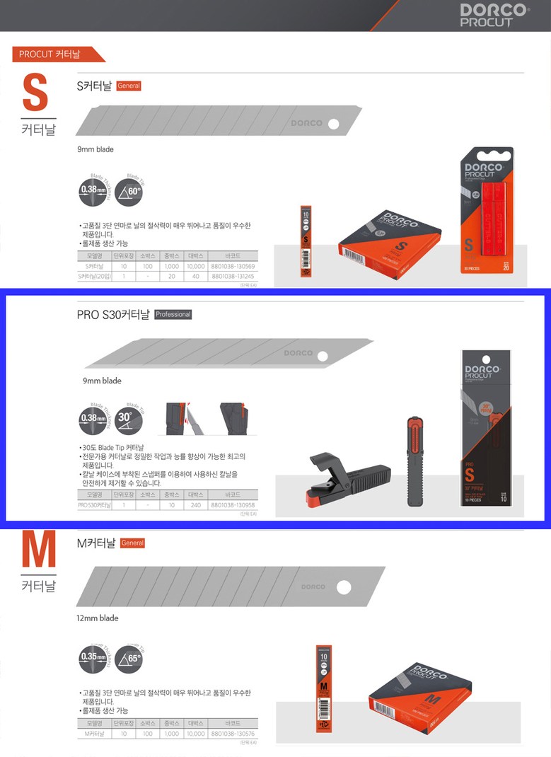 품명 및 모델명 도루코 커터날 PRO S30/SP A30