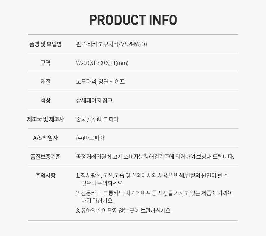 | 품명 및 모델명 | 판 스티커 고무자석/MSRMW-10 |