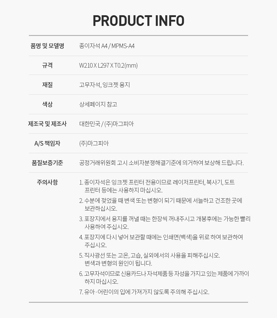| 품명 및 모델명 | 종이자석/MPMS-A4 |