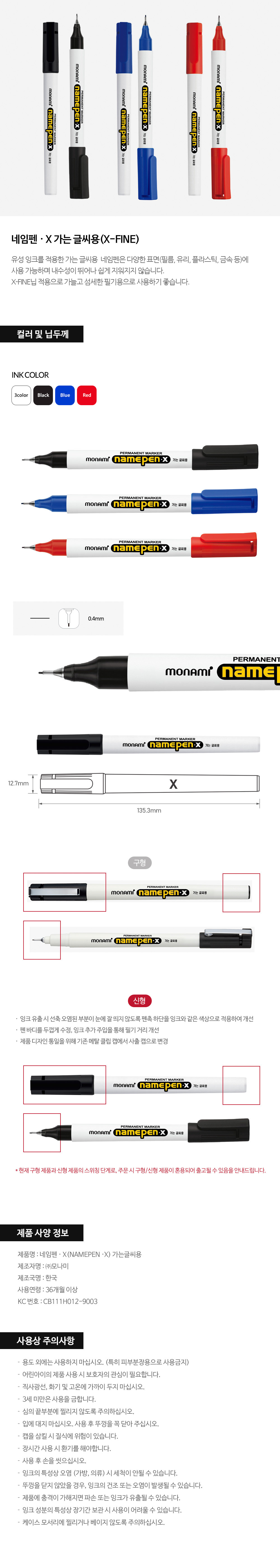 | 품명 및 모델명 | 필기도구/네임펜 X |