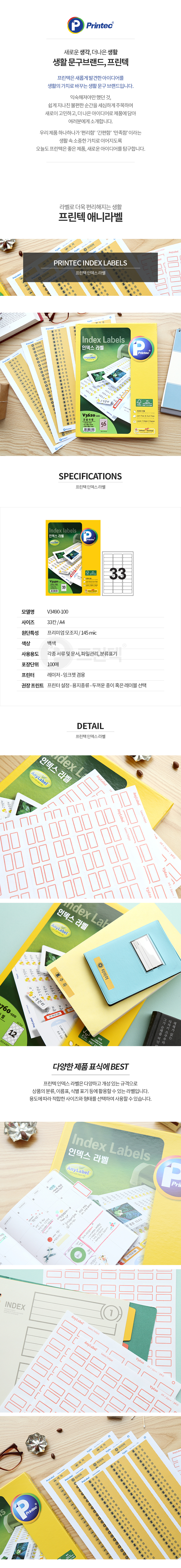 프린텍 V3490-100/인덱스라벨/33칸/100매
