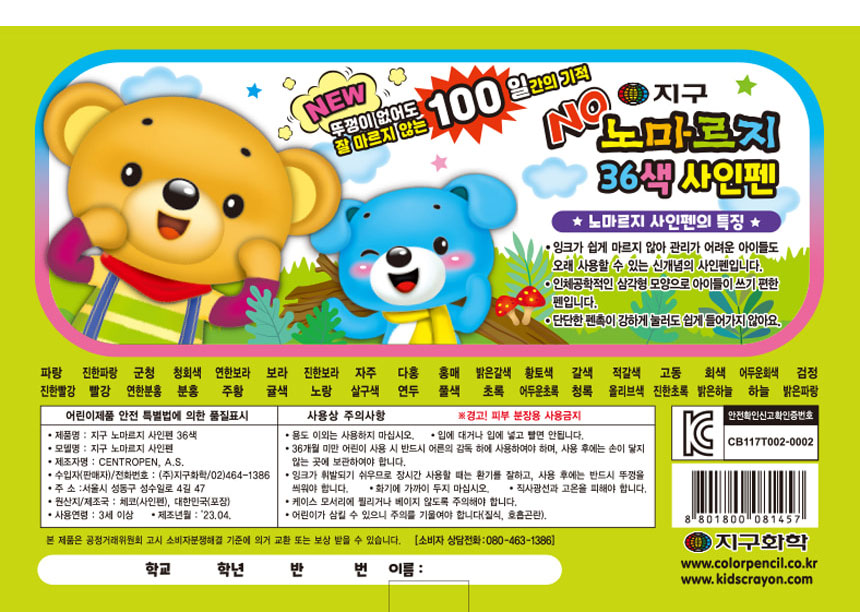 | 품명 및 모델명 | 지구 노마르지 사인펜 36색 |
