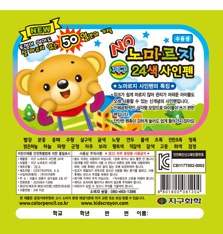 | 품명 및 모델명 | 지구 노마르지 사인펜 24색 |