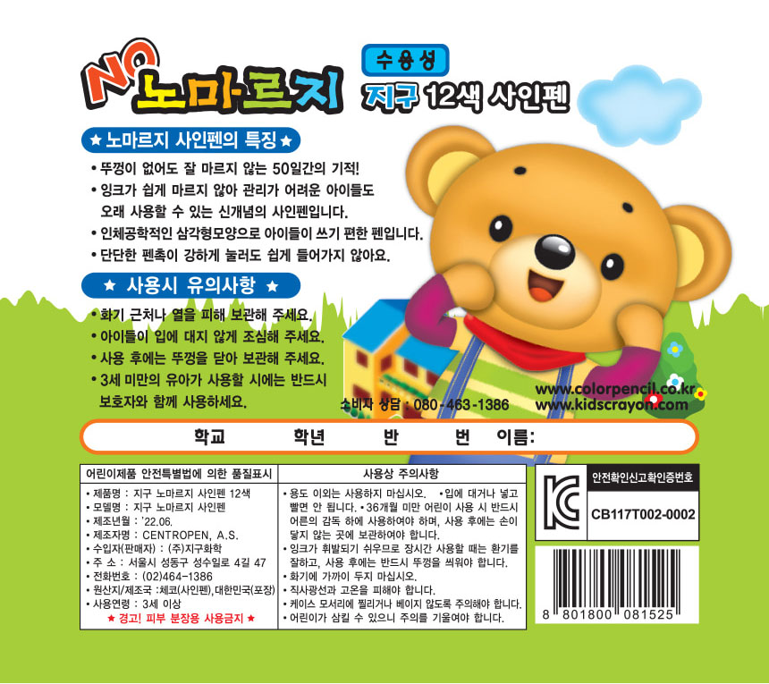 | 품명 및 모델명 | 지구 노마르지 사인펜 12색 |