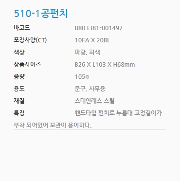 | 품명 및 모델명 | 피스코리아 510 1공 펀치 |