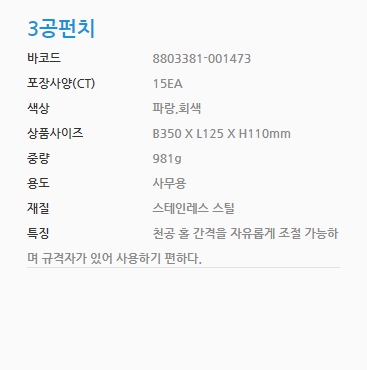 | 품명 및 모델명 | 피스코리아 3공 이동펀치 |
