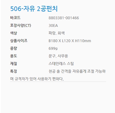 | 품명 및 모델명 | 피스코리아 506 2공 이동펀치 |