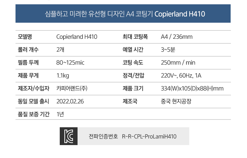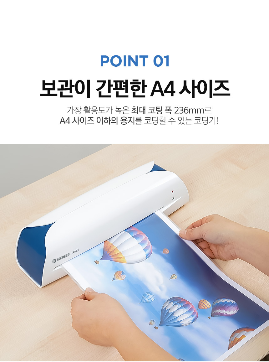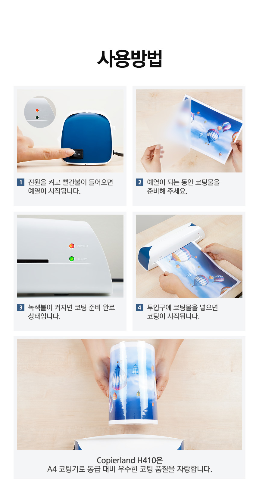 품명 및 모델명 카피어랜드 A4 코팅기 Qualmax H410 2롤러 개인/가정용