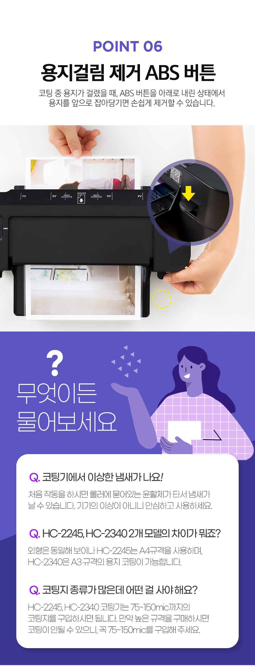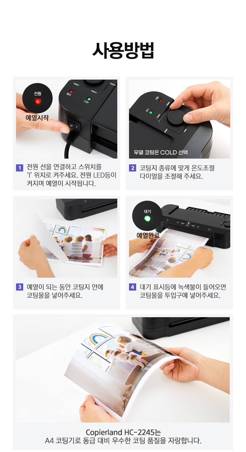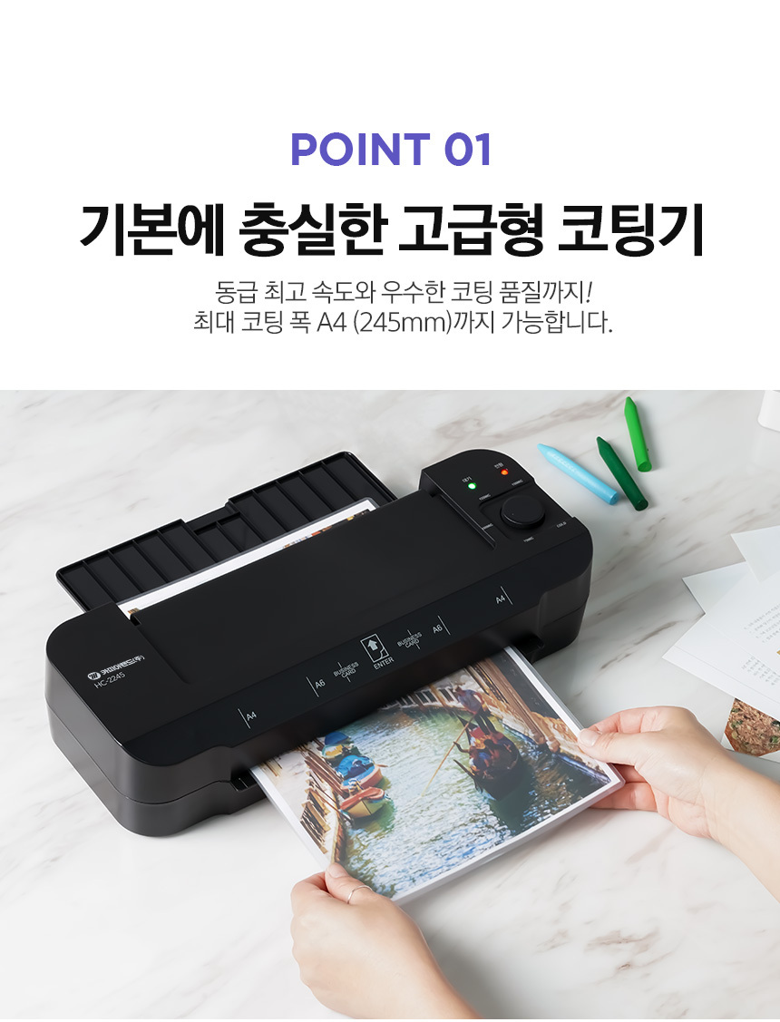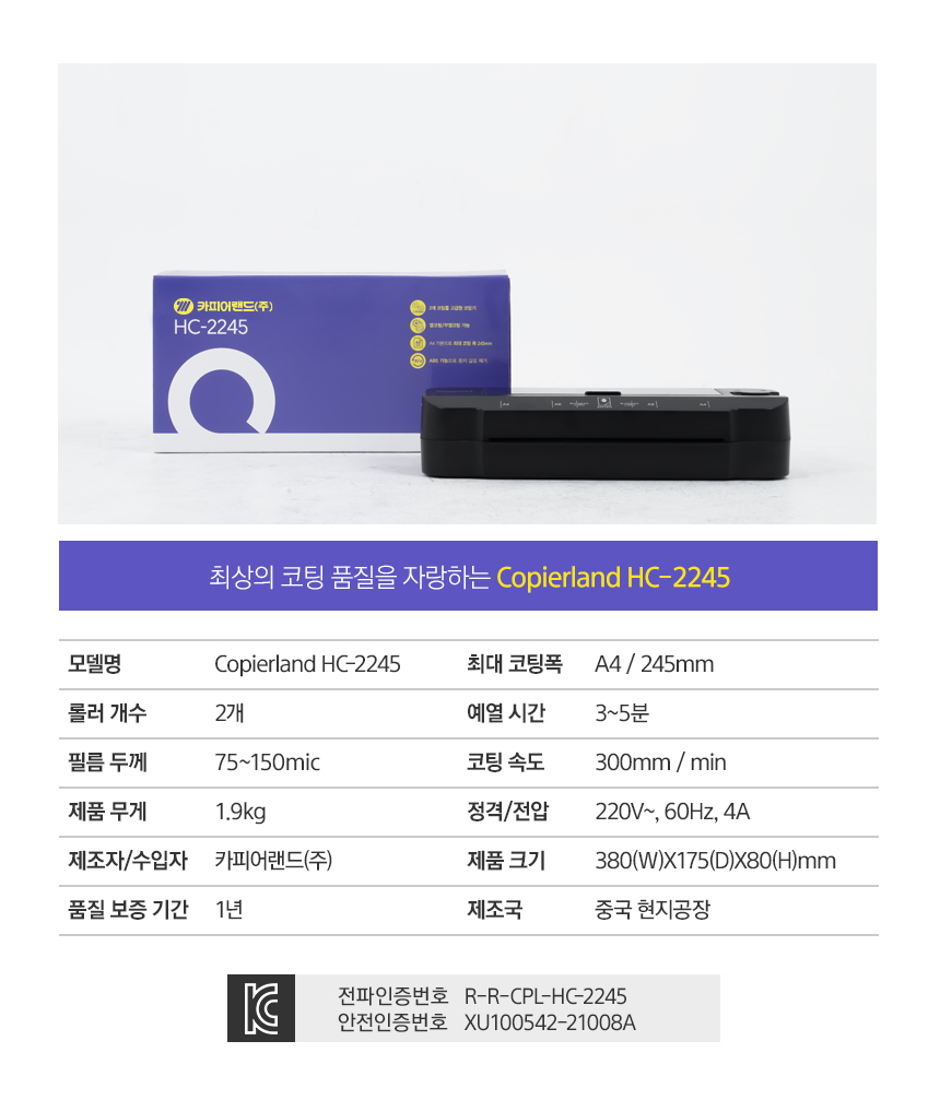 | 품명 및 모델명 | 카피어랜드 A4 소형 코팅기 Qualmax HC-2245 2롤러 개인/가정용 |