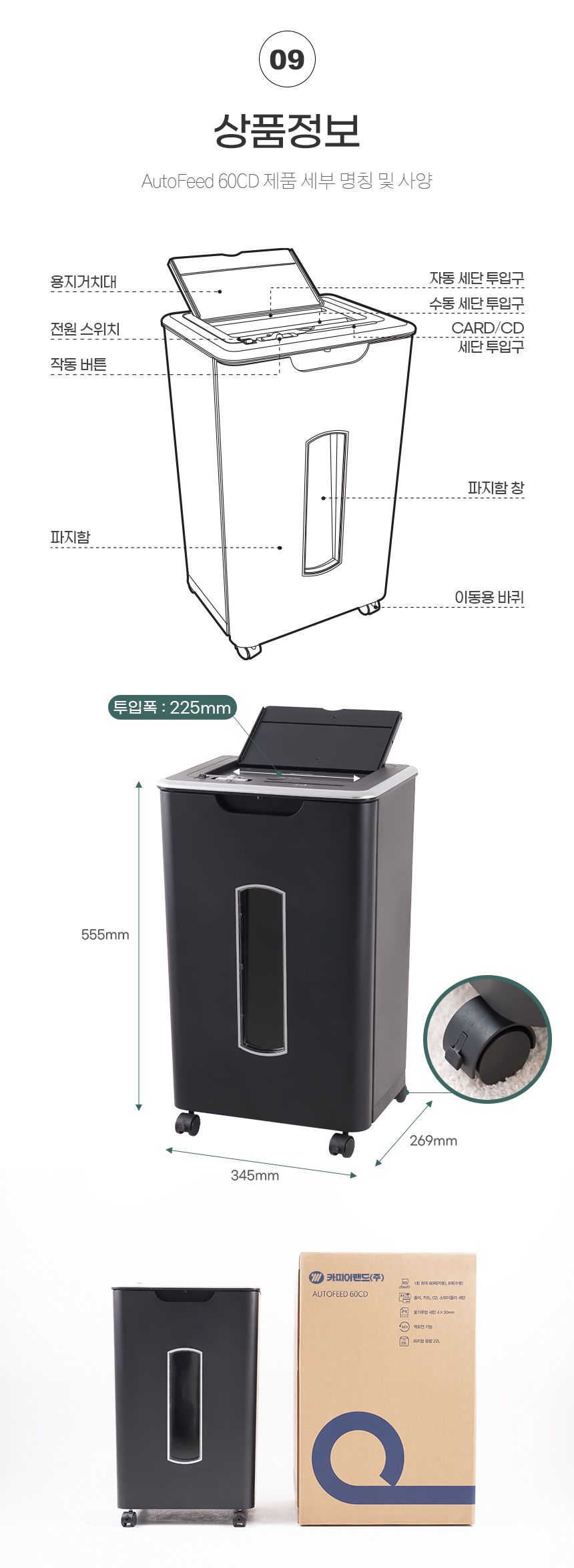 | 품명 및 모델명 | 카피어랜드 자동급지 문서세단기 Qualmax AutoFeed 60CD |