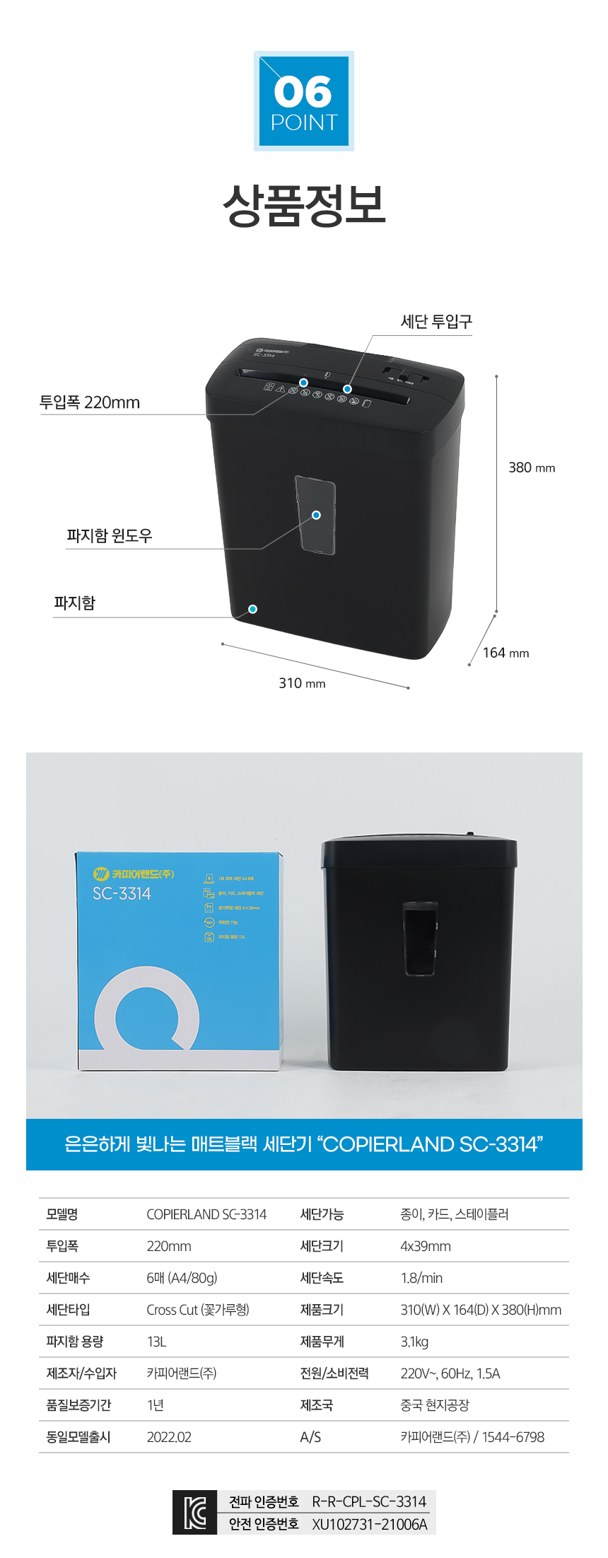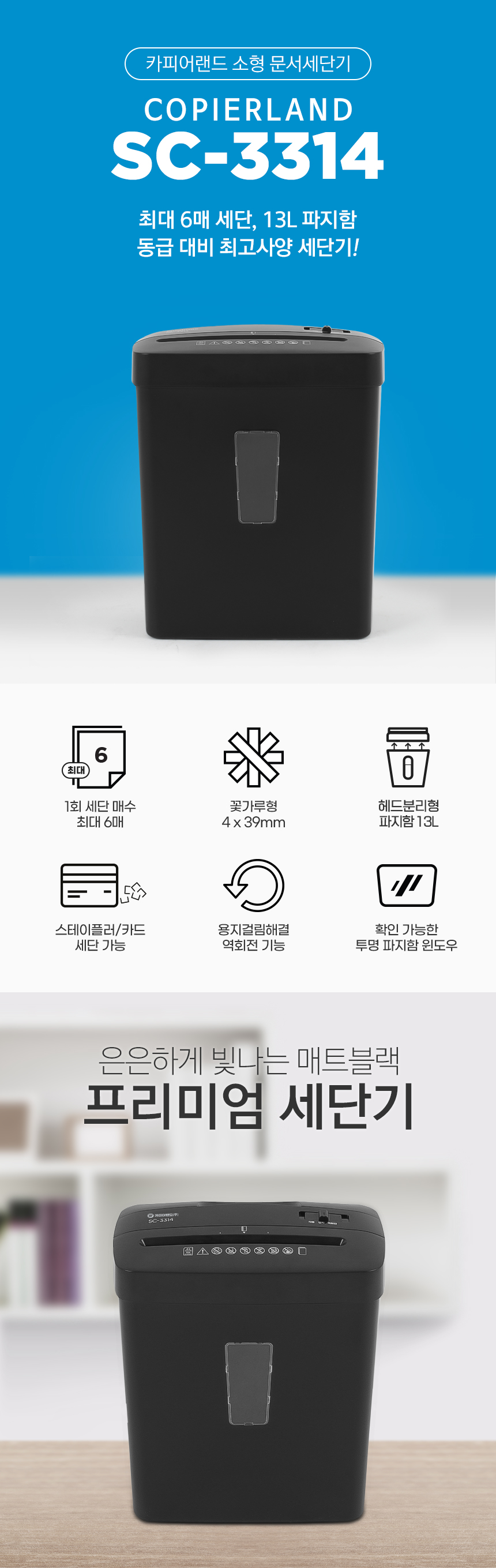 | 품명 및 모델명 | 카피어랜드 소형 문서세단기 QualMax SC3314 |