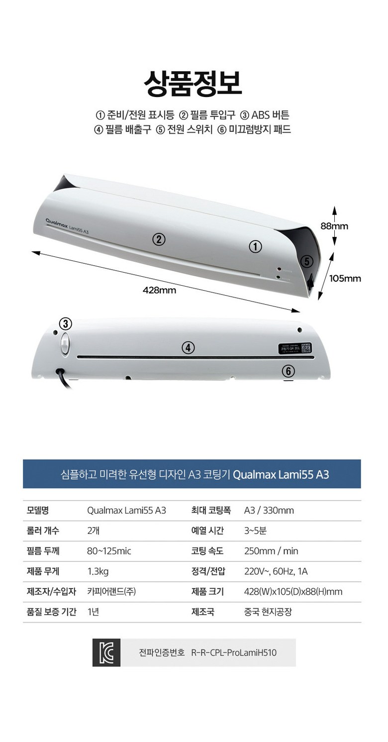 | 품명 및 모델명 | Qualmax Lami55 A3/Qualmax Lami55 A3 |