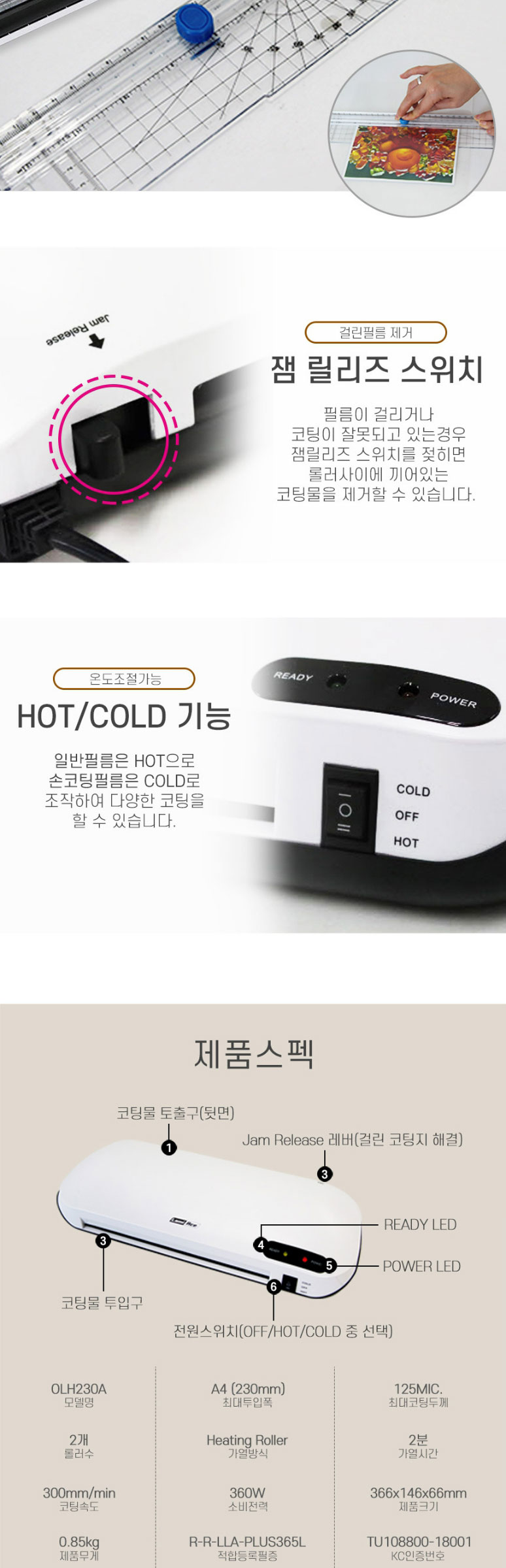 | 품명 및 모델명 | 문서세단기/라미에이스 A4코팅기 [LamiAce OLH230A] |