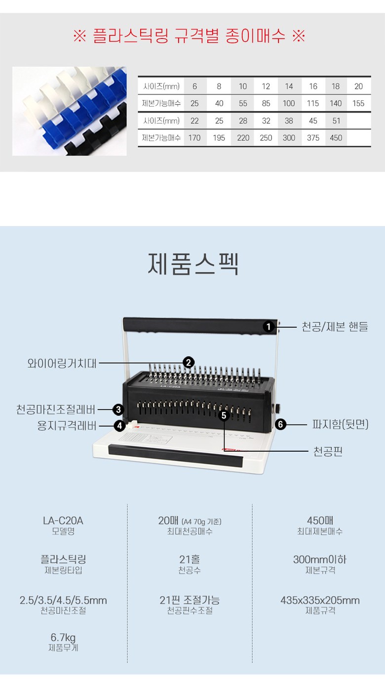 | 품명 및 모델명 | 플라스틱링제본기/라미에이스 플라스틱링제본기 LA-C20A |
