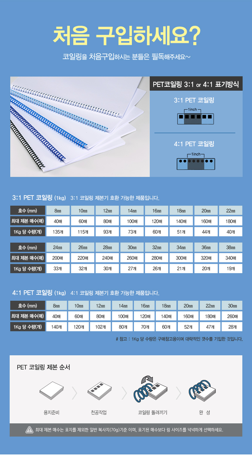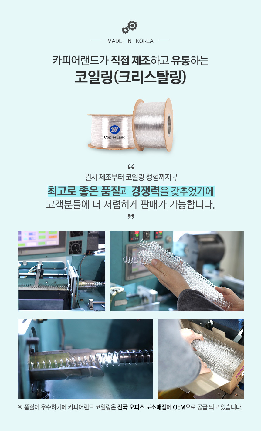 | 품명 및 모델명 | 카피어랜드 국산 3:1 PET 컬러 코일링 |