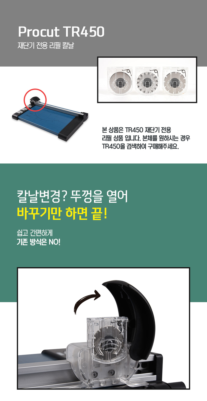 카피어랜드 A4 소형 트리머재단기 ProCut TR450 전용 재단칼(직선/곡선/점선)