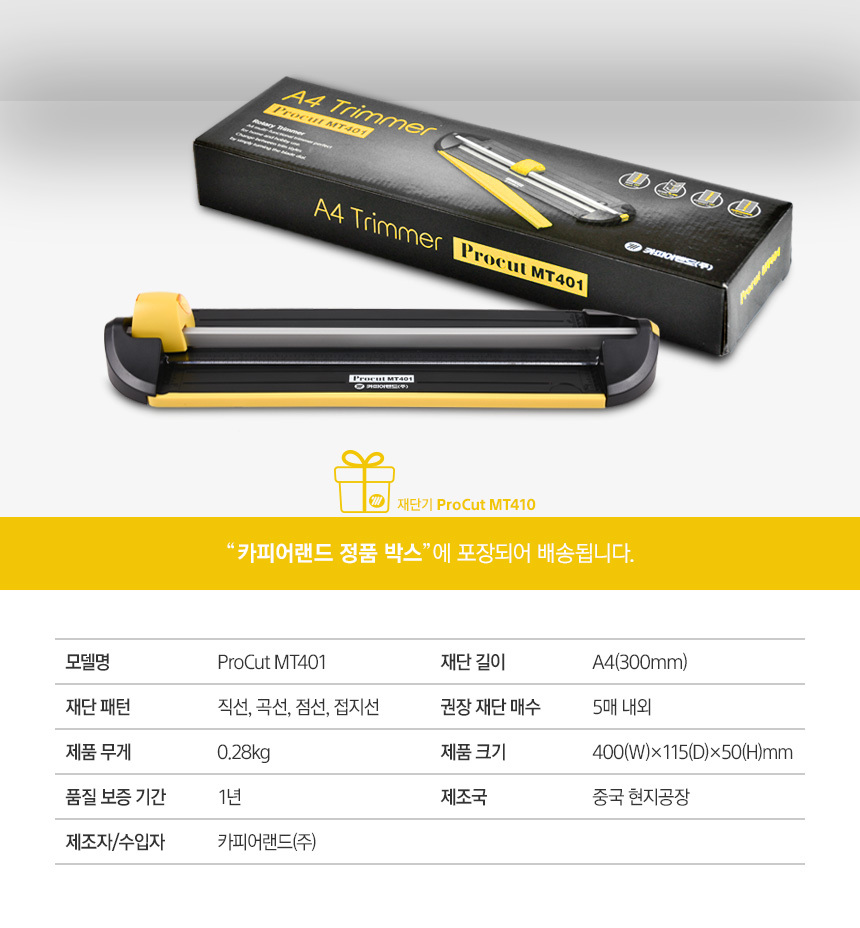 카피어랜드 A4 소형 트리머재단기 ProCut MT401(직선/곡선/점선/접지선)
