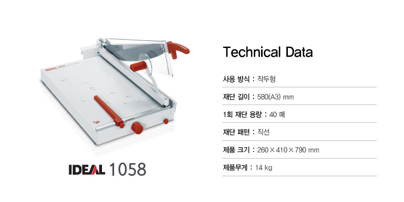 품명 및 모델명 카피어랜드 A3 직선 작두형재단기/IDEAL 1058
