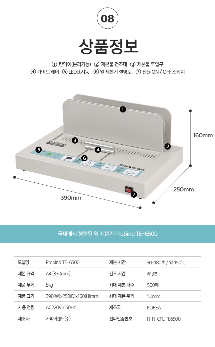 | 품명 및 모델명 | 카피어랜드 열제본기/ProBind TE-6500 |