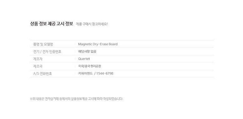 | 품명 및 모델명 | Quartet 미니 화이트보드/M7 |