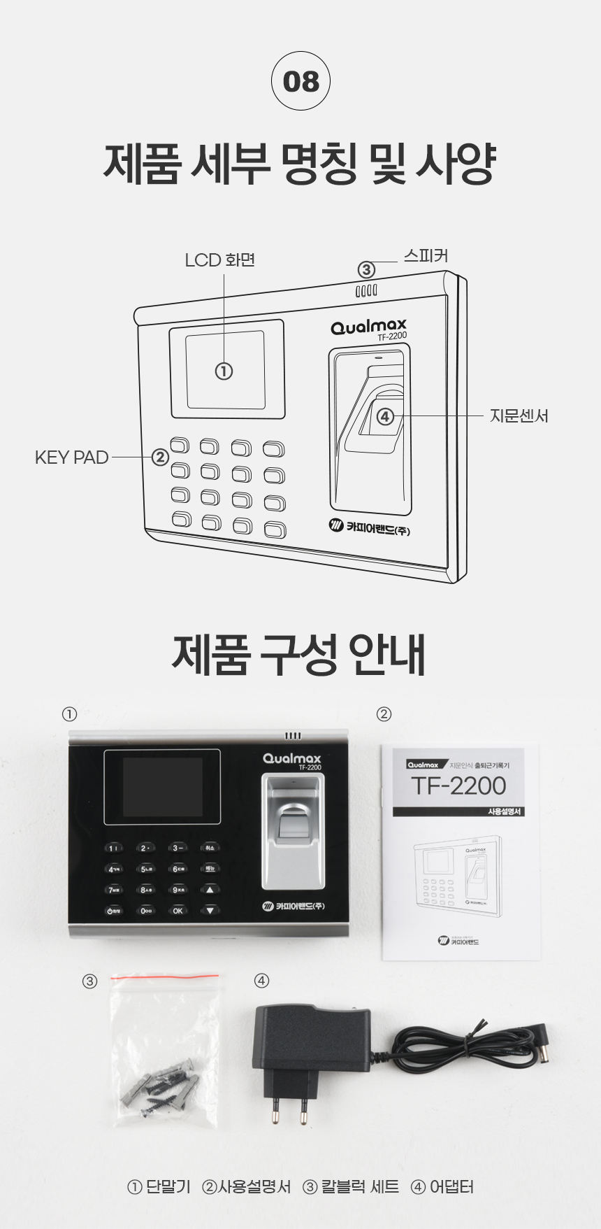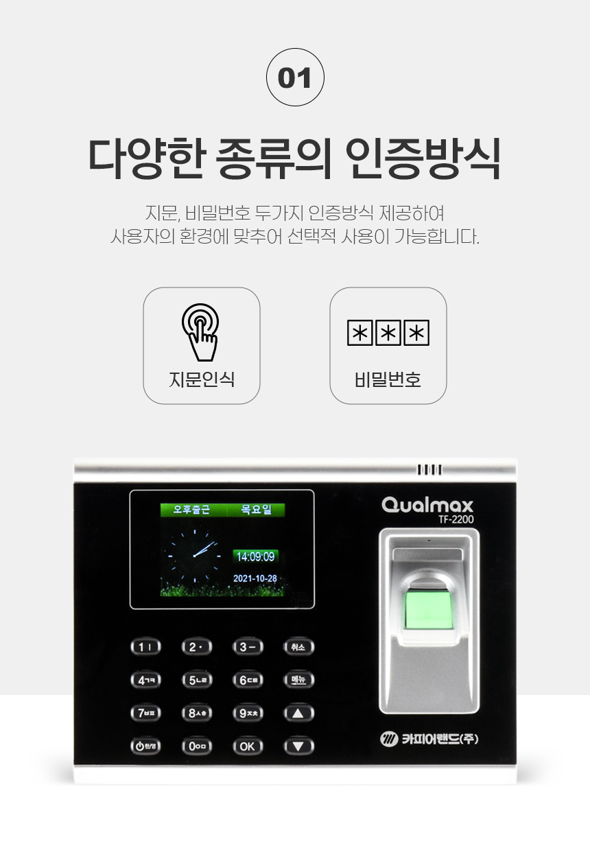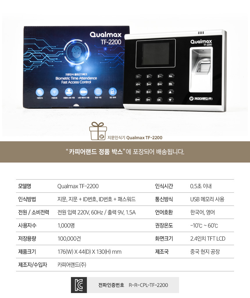 | 품명 및 모델명 | 카피어랜드 지문인식기 출퇴근기록기/Qualmax TF-2200 |