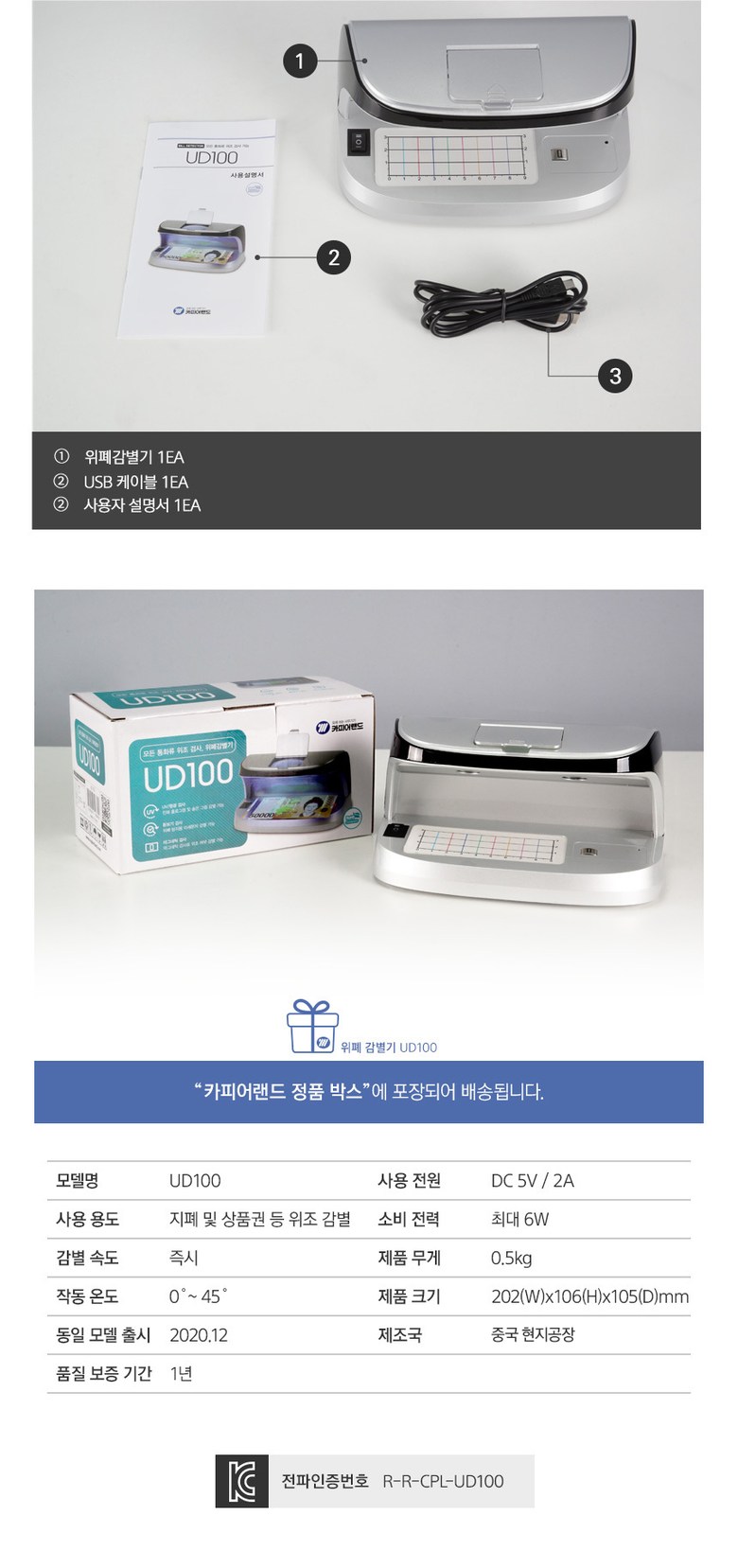 | 품명 및 모델명 | 카피어랜드 위폐 감별기 보안문서/UD100 |