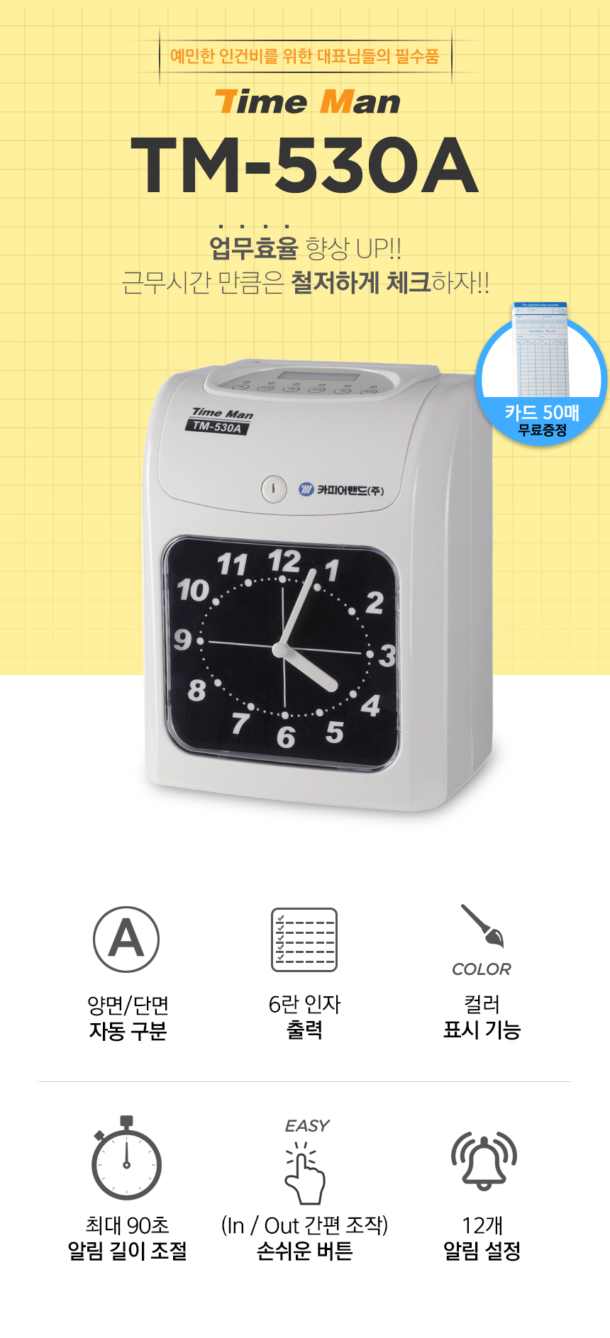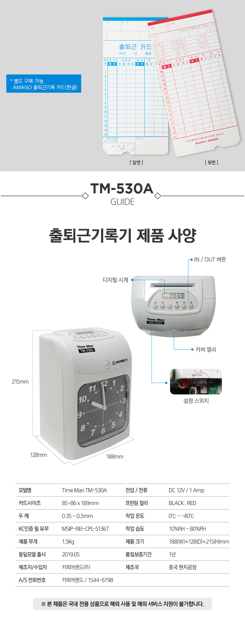 | 품명 및 모델명 | 카피어랜드 아날로그 출퇴근기록기/Time Man TM-530A |