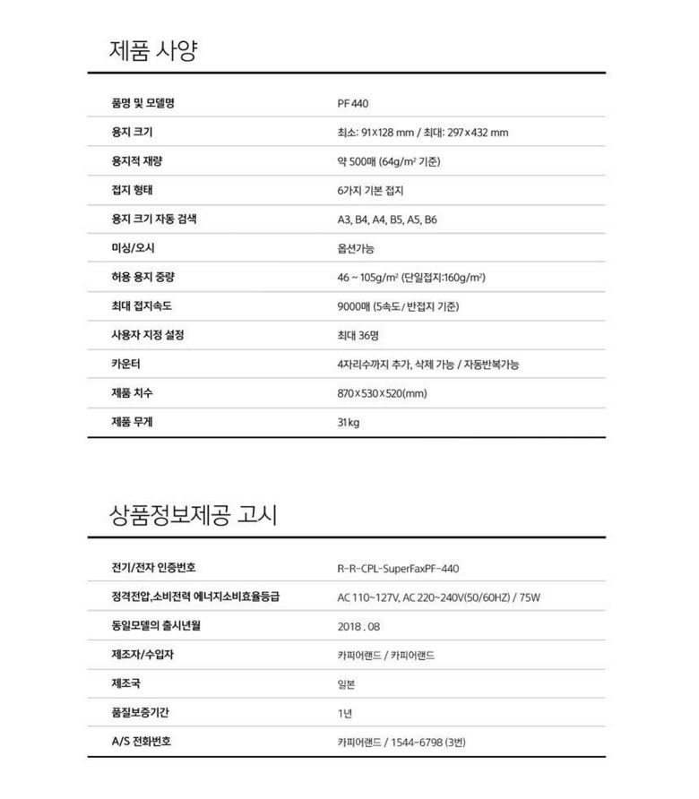 | 품명 및 모델명 | 카피어랜드 자동 접지기/Superfax PF440 |