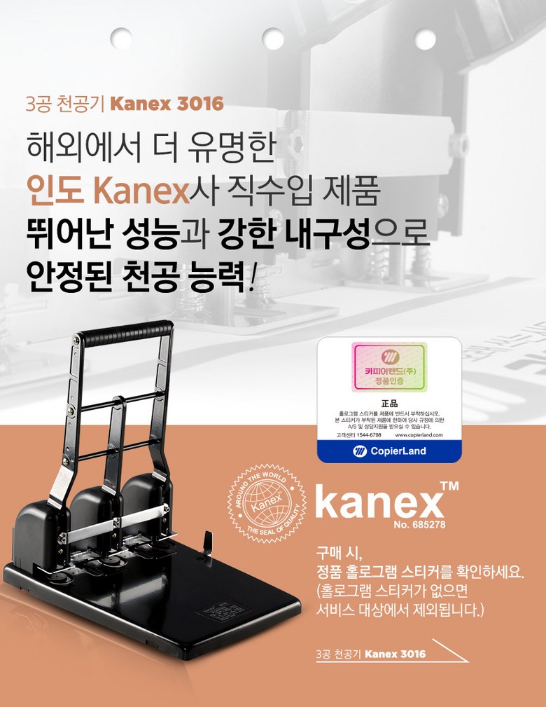 | 품명 및 모델명 | 카피어랜드 3공 수동천공기/Kanex 3016 |