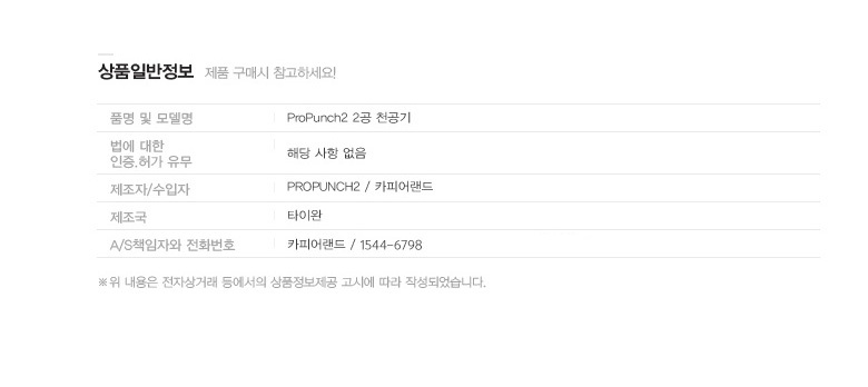 | 품명 및 모델명 | 카피어랜드 2공 천공기/ProPunch2 |